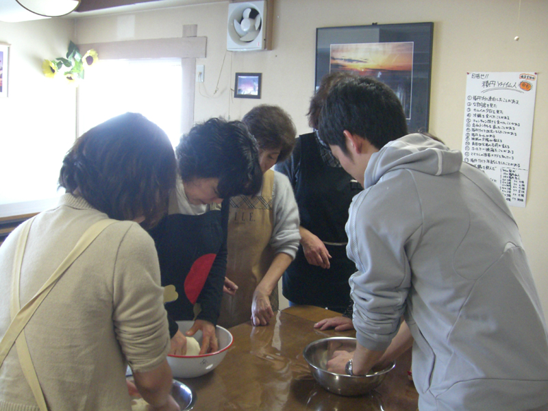 踏んだり捏ねたり、「とってもいい運動にもなるね」、と言いながら