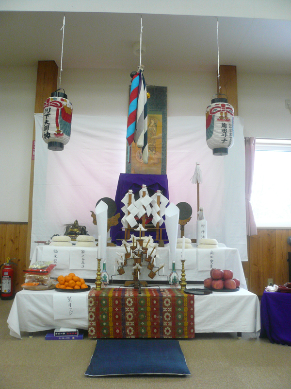毎年、当番のお母さん方が、祭壇を作って、ご飯を作ってまちの女性をおもてなしします。
